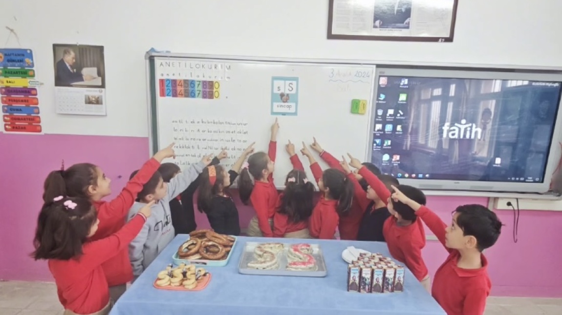 1/A Sınıfı S harfini Sadriye öğretmenlerinin yaptığı pasta ve kurabiye eşliğinde öğrendi. Simit yediler, süt içtiler. Sınıf öğretmenimiz Sadriye YAMAN'a teşekkür eder, öğrencilerimize başarılar dileriz.