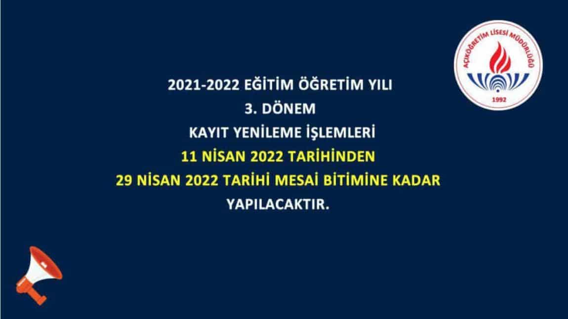 2021-2022 EĞİTİM ÖĞRETİM YILI 3. DÖNEM KAYIT YENİLEME İŞLEMLERİ