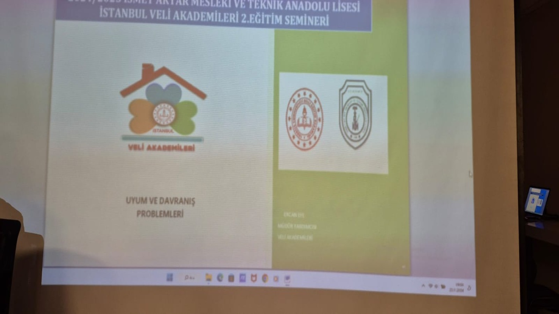 İstanbul Veli Akademileri 2.Eğitim Uyum ve Davranış sorunları eğitimi Okulumuz konferans salonunda Müdür Yardımcısı Ercan EFE tarafından gerçekleştirilmiştir.