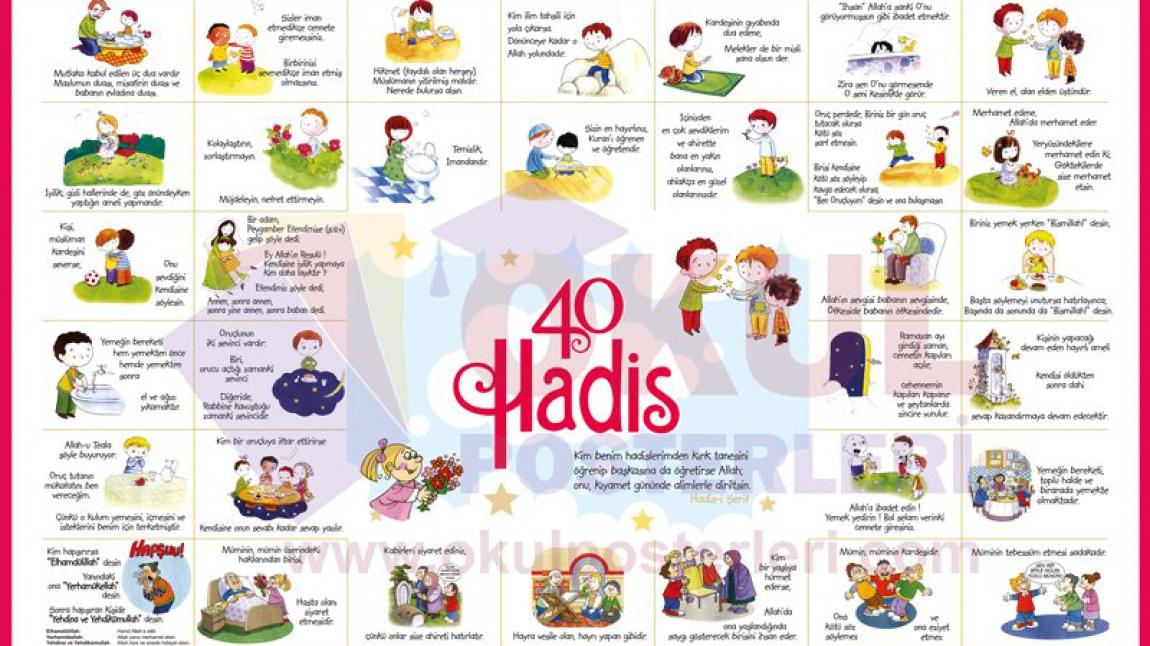 Kalite Takip Sistemimizin “40 Kavram”, “40 Ayet”, “40 Hadis”, “40 Şair 40 Şiir” etkinliklerinden okul program ve tarihine uygun şekilde seçilen etkinliklerden birisi gerçekleştirilir."" maddesine uygun olarak Din Kültürü ve Ahlak Bilgisi Öğretmenimiz tarafından sınıflarda 40 Hadis ile ilgili etkinlikler yapılmıştır.