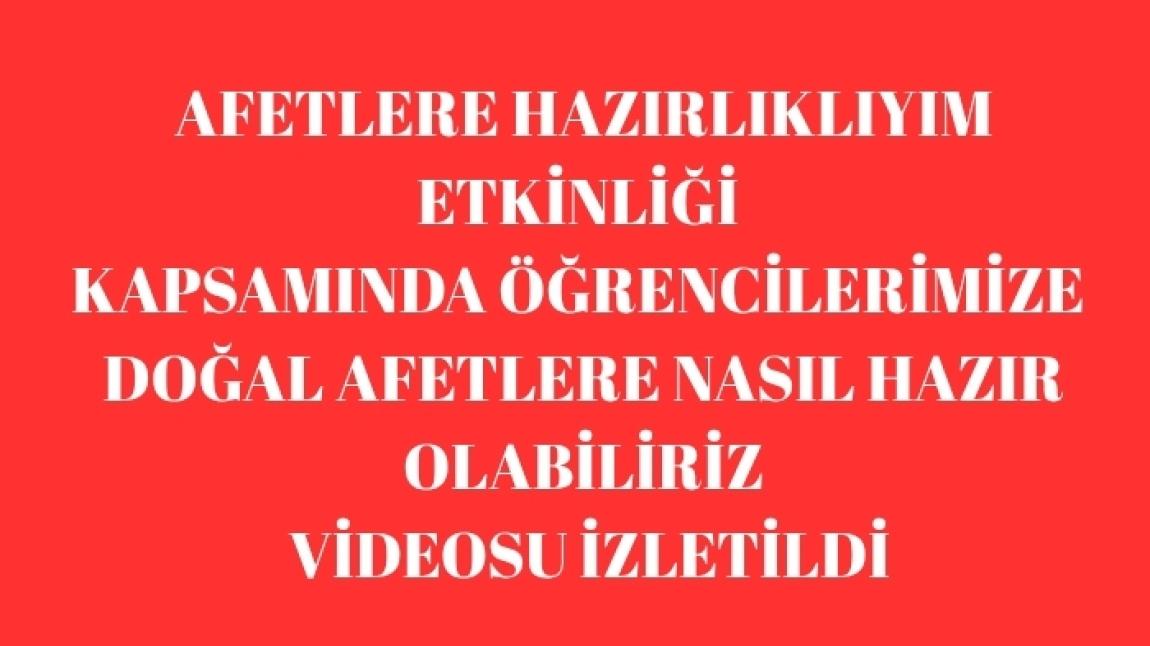 Afetlere hazırlık kapsamında okulumuzda 296 öğrenci, 14 öğretmen, 12 veli ve 4 personelimize eğitim verildi.
