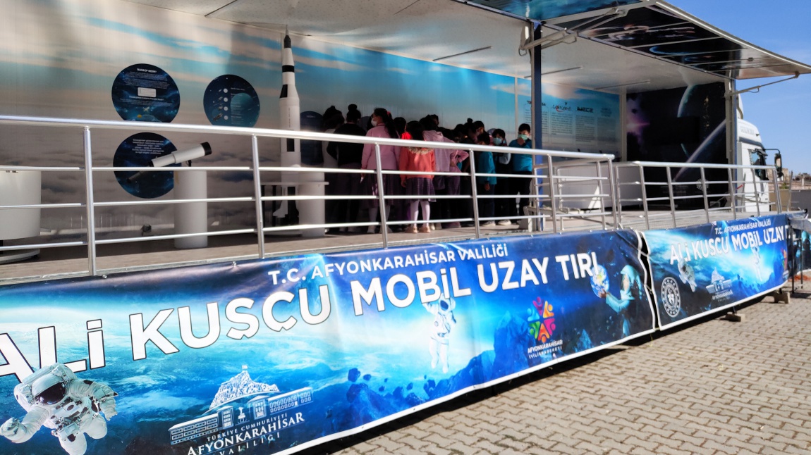 İçişleri Bakanlığımızın desteği, Valiliğimiz ve Afyon İyilik Hareketi öncülüğünde 95 günde tamamlanan, 81 ili köy köy gezerek çocuklara ve gençlere uzayı sevdirecek Ali Kuşçu Mobil Uzay Tırı okulumuzu ziyaret etti.