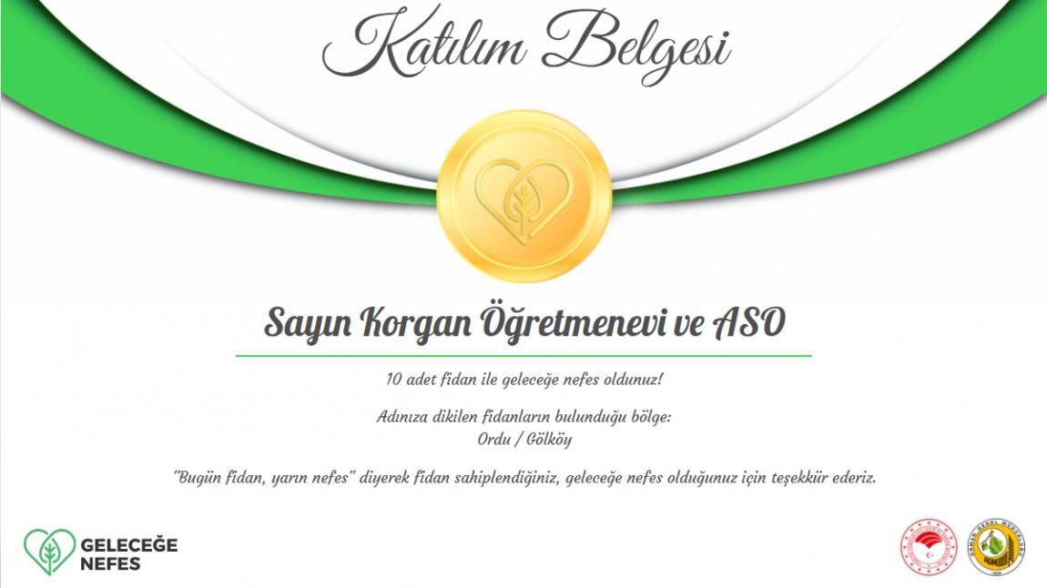 "Bugün Fidan, Yarın Nefes" düşüncesiyle ilimiz Gölköy ilçesinde dikimi gerçekleştirilmek üzere 10 adet fidan sahiplendik.