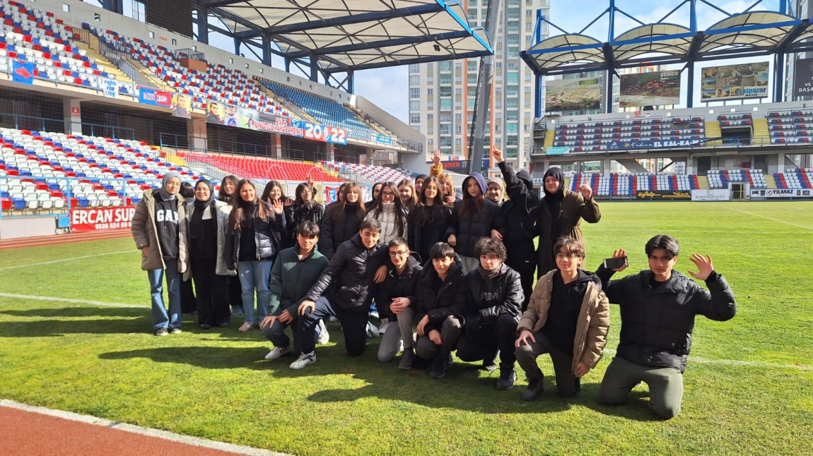 9.Sınıf öğrencilerimiz Matematik öğretmenleri Cengiz Cinkavuk danışmanlığında; Pisagor, Öklid ve Tales teoremleri uygulama etkinliğini gerçekleştirdiler. Dr. Necmettin Şeyhoğlu stadyumunda şekli görüyorum, resmini çekiyorum sorumu yazıyorum etkinliği yapıldı.