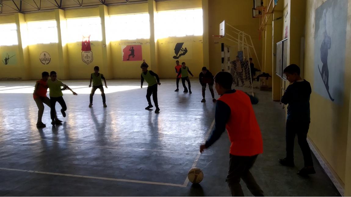 Hamur YBO geleneksel erkek futsal turnuvasında 7. ve 8. sınıflar arasında oynanan maçı finalde rakibi olan 7-C ' yi penaltılarla geçen 8-B kazanmıştır.