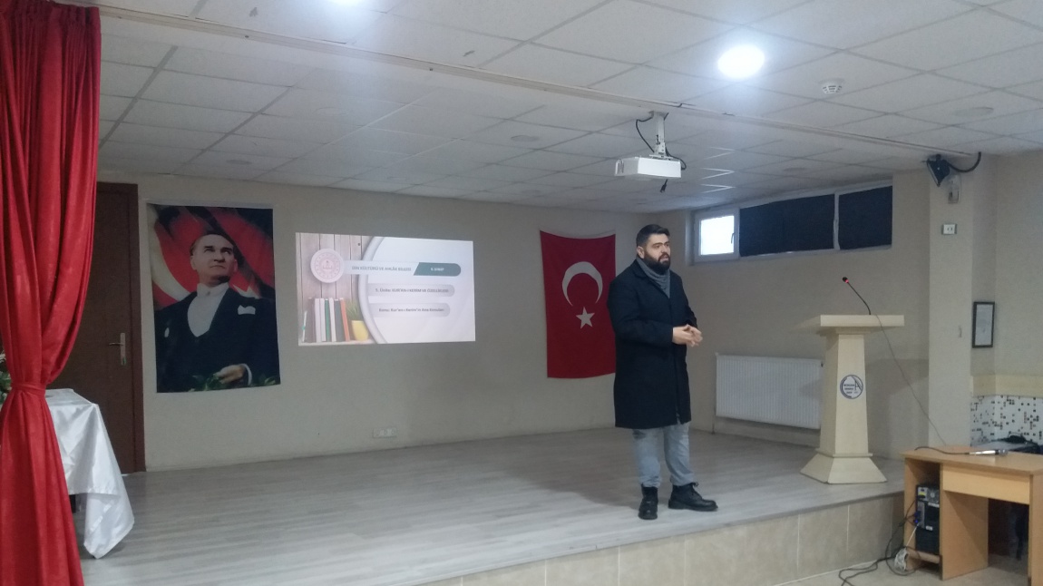 Okulumuz öğretmeni Bayram KIRIMLI ,Kalite Takip Sistemi mart ayı konusu olan Hz. Muhammed'in (s.a.v.) eğitim anlayışı ve eğitim metotları ile ilgili öğrencilerimize seminer düzenlendi.