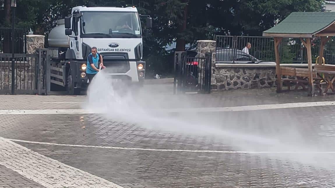 Ortahisar Belediyesi Tarafından Okulumuzn Ön Bahçesi ve Çevresi Yıkanark Temizlendi