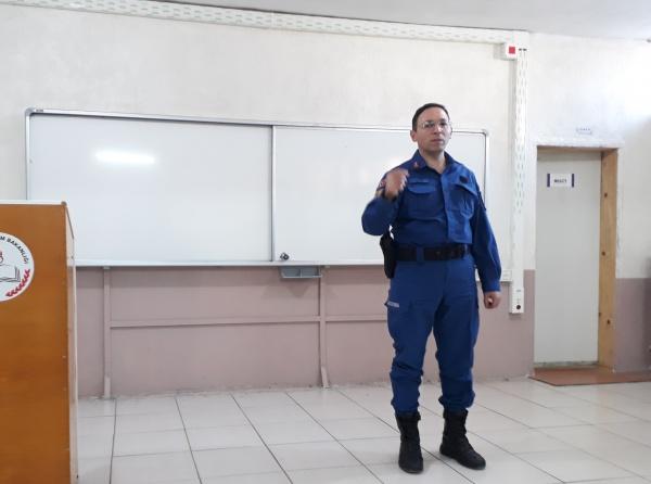 Tüm öğrencilerimizin katılımıyla çok amaçlı salonumuzda düzenlenen eğitimde; öğrencilerimiz trafik ile ilgili akıllarına takılan tüm soruları sordular.