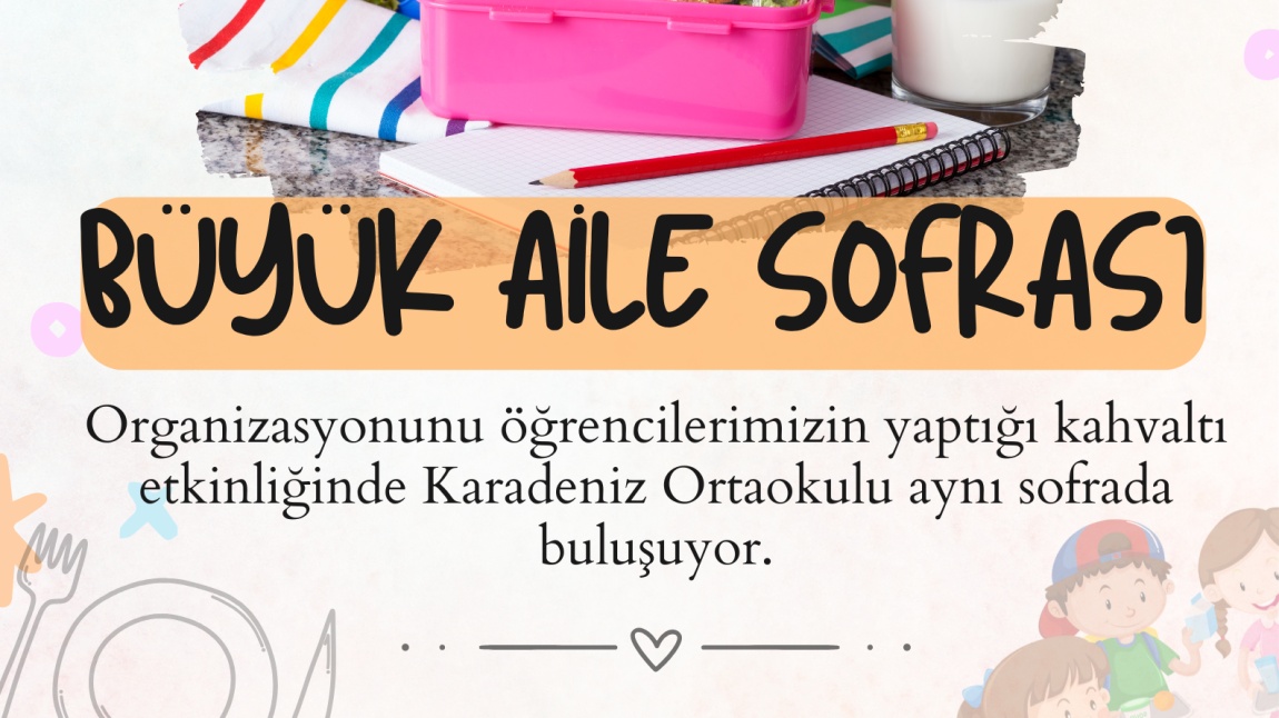21.05.2025 Çarşamba günü 09.00-10.30 saatleri arasında Yaşam Becerileri Projesi kapsamında organizasyonunu öğrencilerimizin yapacak olduğu Büyük Aile Sofrası etkinliği düzenlenecek olup öğrencilerimizin etkinlik düzenleme ve organizasyon düzenleme kapsamında yaratıcı ve girişimci özelliklerinin pekiştirilmesi amaçlanmaktadır.